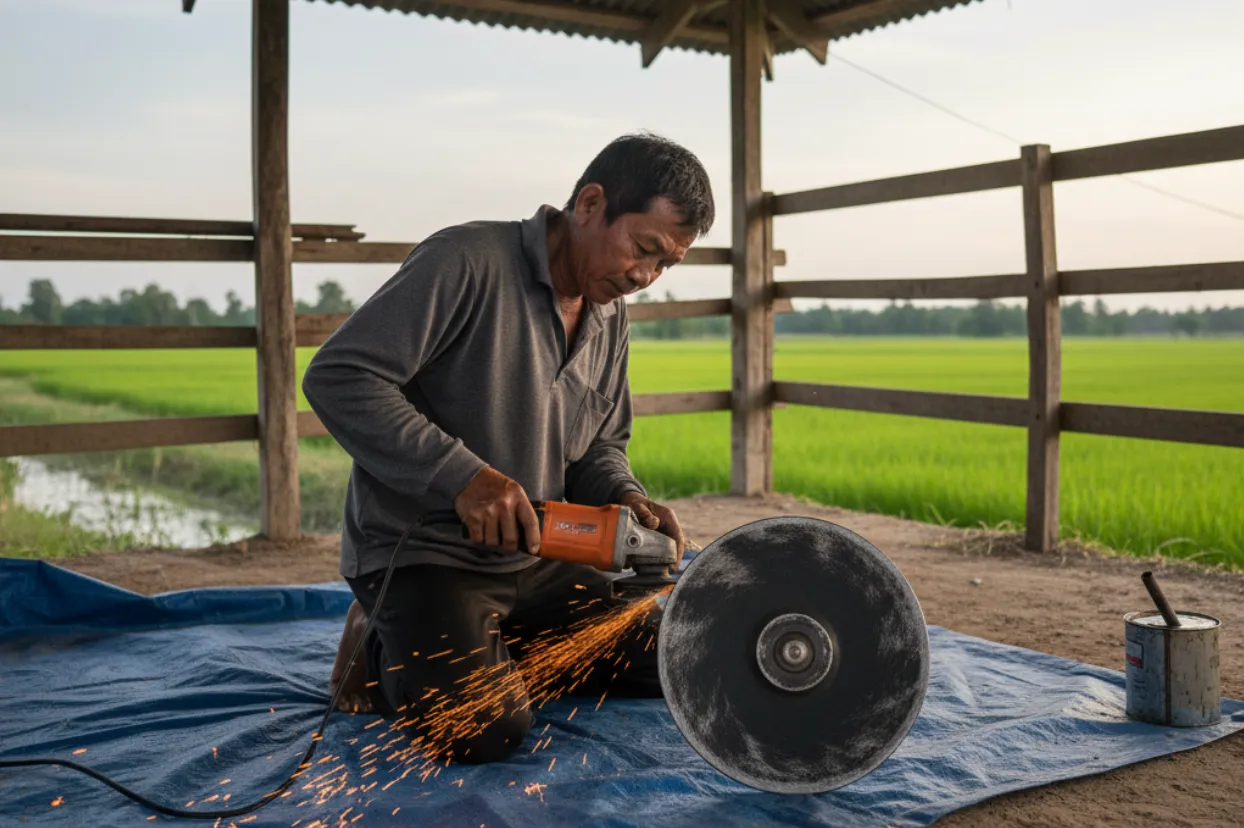 ในส่วนของการคงประสิทธิภาพจานไถ พี่น้องเกษตรกรสามารถลับคมผานไถด้วยตัวเองได้ เพียงแค่มีเครื่องเจียรไฟฟ้าและอุปกรณ์สำหรับป้องกันระหว่างการลับคม ก็สามารถทำให้จานไถคมด้วยตัวเองได้ที่บ้านแล้ว