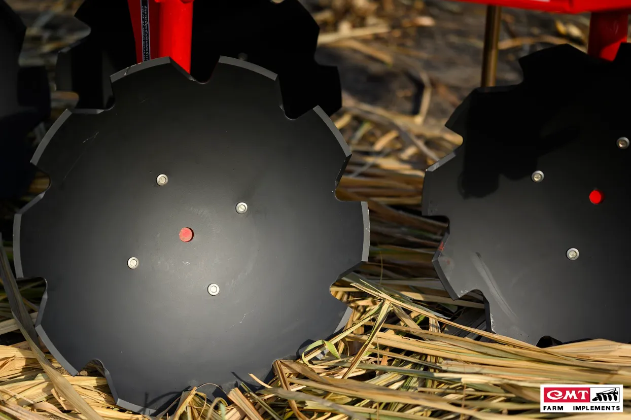 วางจานในลักษณะโค้ง และเรียงใกล้กันแบบสลับฟันปลา เพื่อสับ ตัด ย่อยเศษพืชให้ชิ้นเล็กลง |