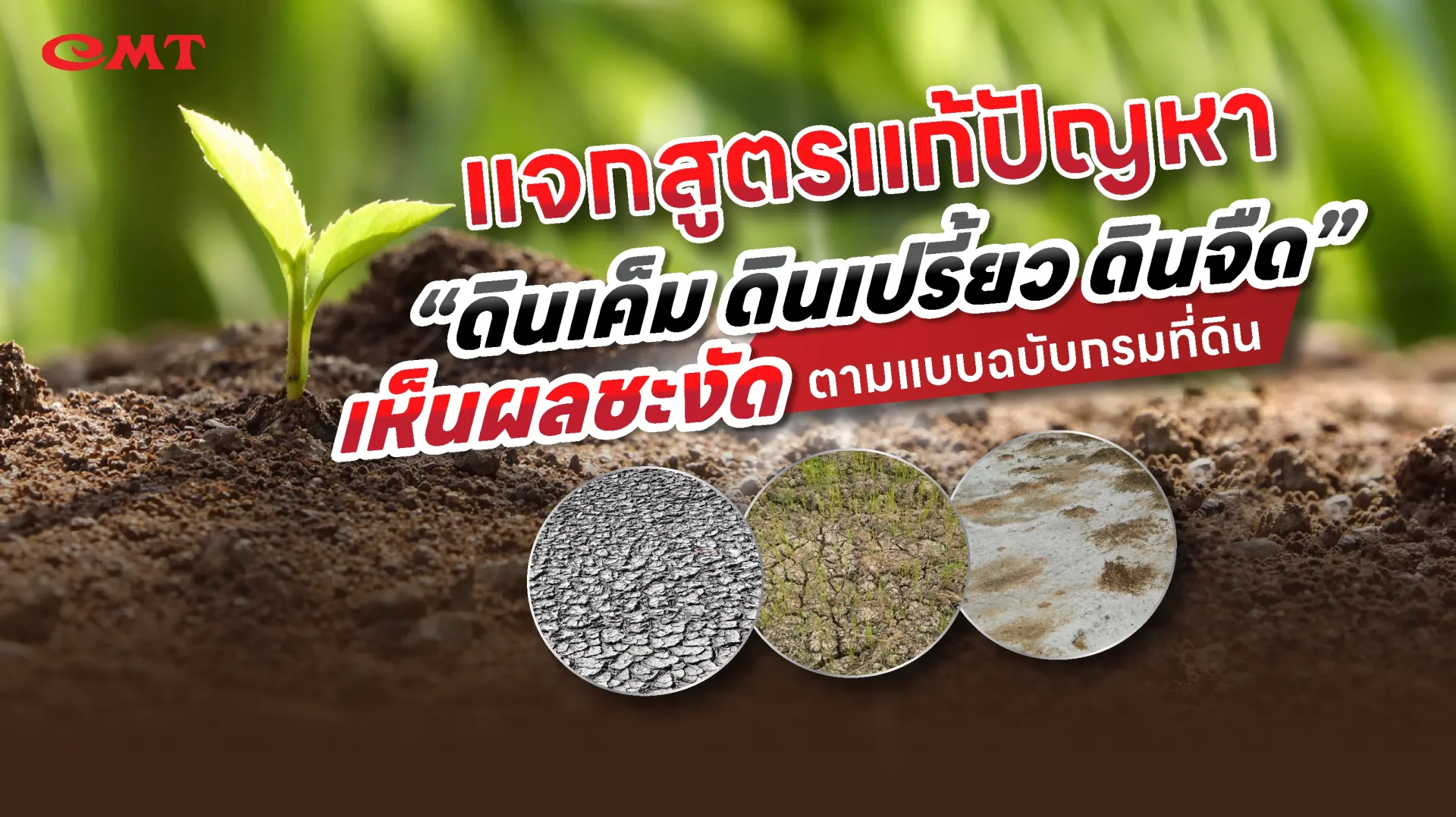 บทความนี้ CMT จึงจะมาแนะนำสูตรปรับปรุงดินตามแนวทางจากกรมที่ดิน แบบเข้าใจง่าย เห็นผลจริง เหมาะกับสภาพดินในไทย เพื่อให้พี่น้องเกษตรกรเลือกแก้ไขตามปัญหาดินที่เจอได้อย่างถูกต้อง ไม่หวั่นดินพังกว่าเดิมอีกต่อไป